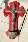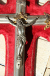 Antique french crucifixon red velvetmetal christ30.5 cm x 17 cm 1900s