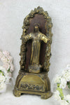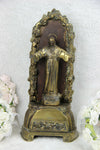Religious antique art nouveau christ statue in a "chapel bow of flowers " Spelter bronze gold gilt 31...