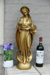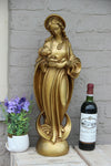 A gorgeous art deco religious madonna chalkware with gold patinamarked with number at back 60 cm height so...