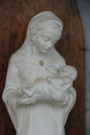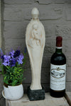 A gorgeous religious madonna ART DECO minimalistic designchalkware with creme beige patina Stone base marked at back 45...