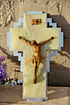 Gorgeous vintage french crucifix from 70s onyx marble wiht metal christ on a chrome metal back plate never...