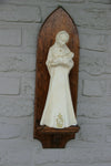 A gorgeous religious madonna on a wood consolechalkware figurine is 30 cm height and console is totally 50...