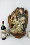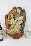 A stunning piece from France Antique 1920 Chalkware polychrome paint wall panel plaque with kids singing a christmas...