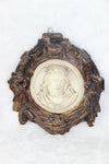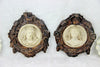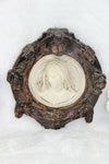 PAIR antique religious wall plaques chalkware relief very detailed with lots of decoration on each christ and mary...