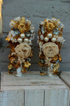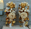 PAIR antique Vieux paris porcelain Vases with silk floral boucquets 19th century29 cm height each totally very decorative...