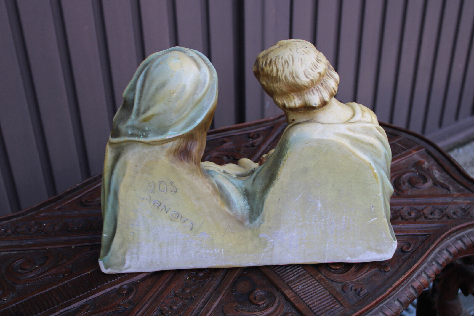 Antique Belgian ARNOVA ceramic marked holy family jesus baby sculpture statue
