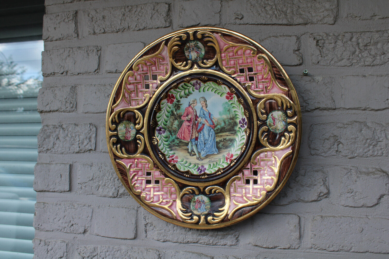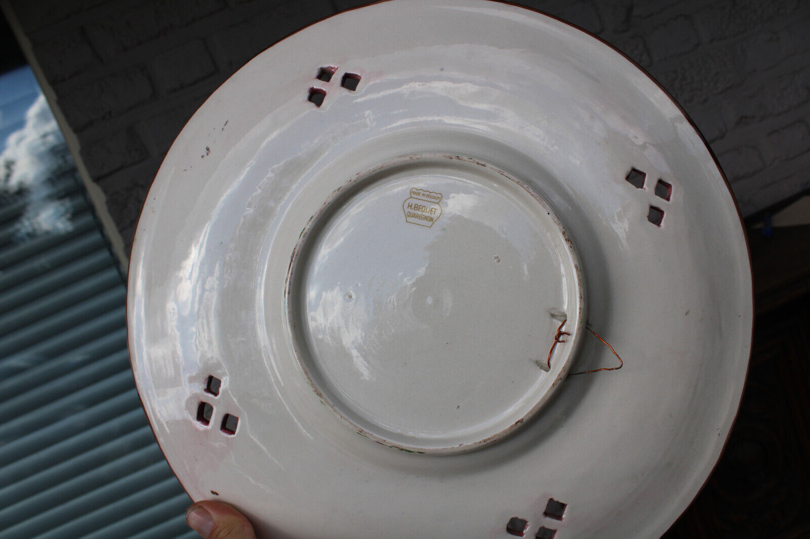 Antique Belgian Becquet faience XL victorian medaillon wall plate signed
