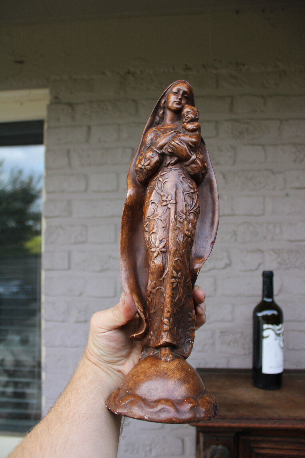 Antique ceramic chalk french SAINT Madonna child statue figurine