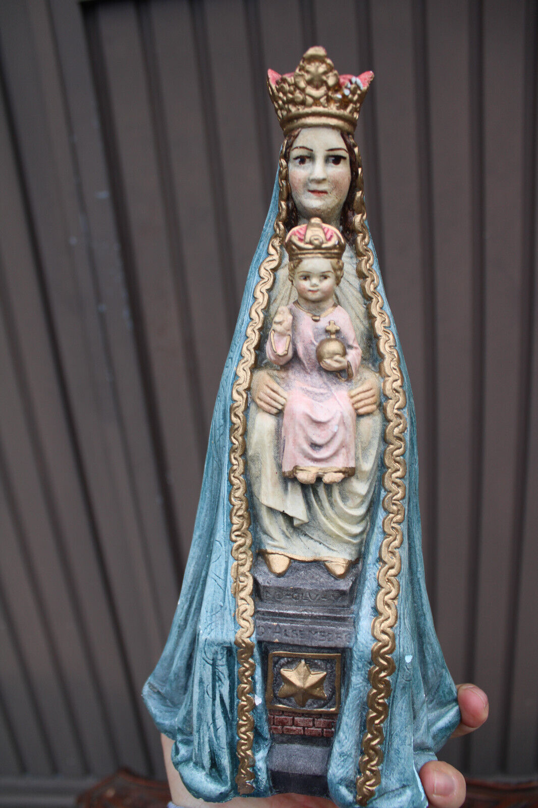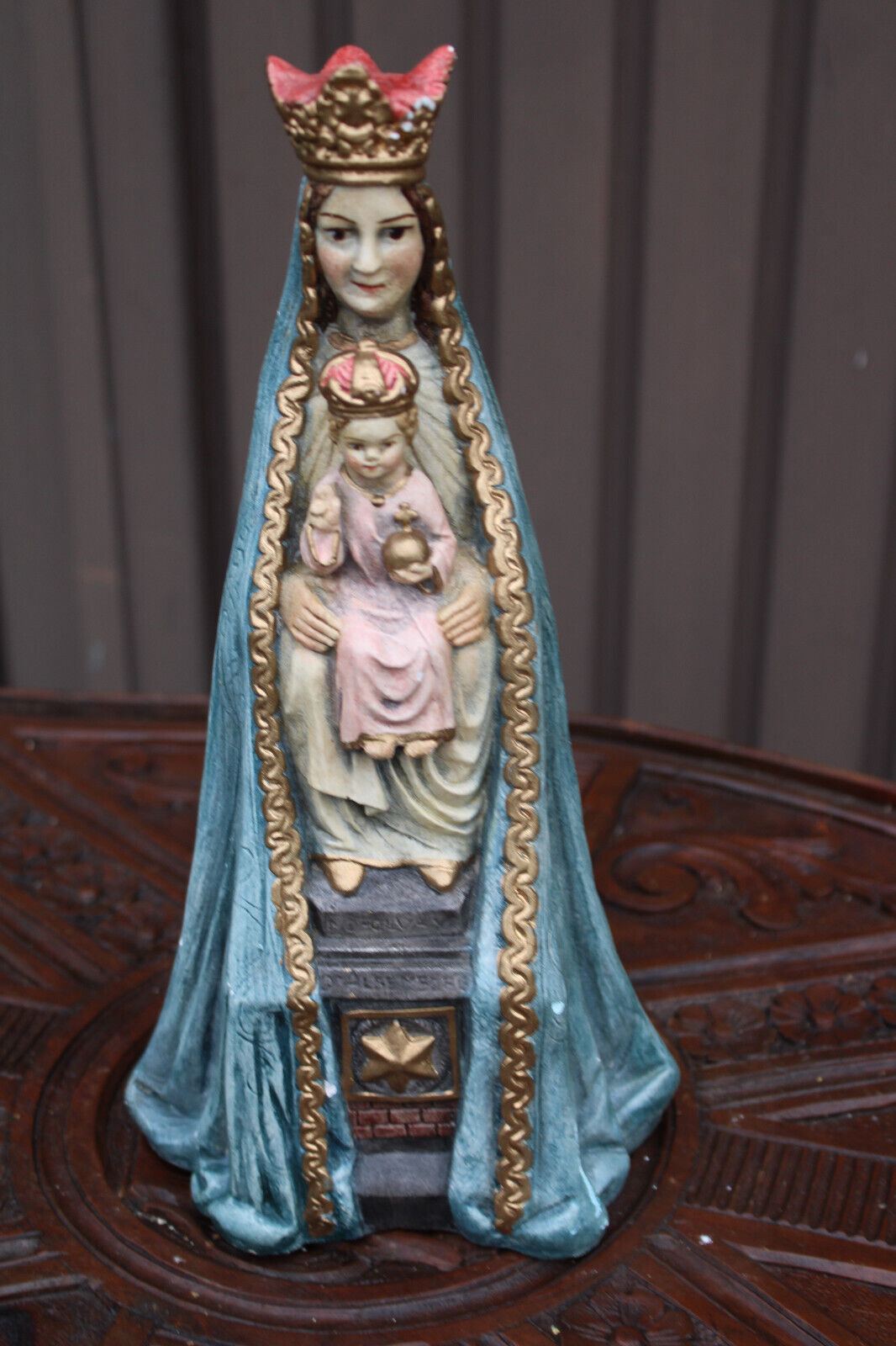 Antique ceramic madonna child figurine statue signed rare