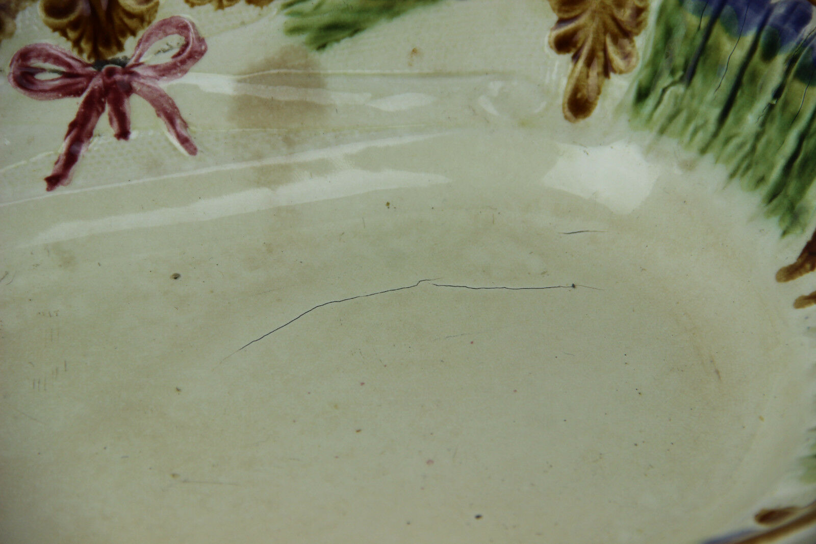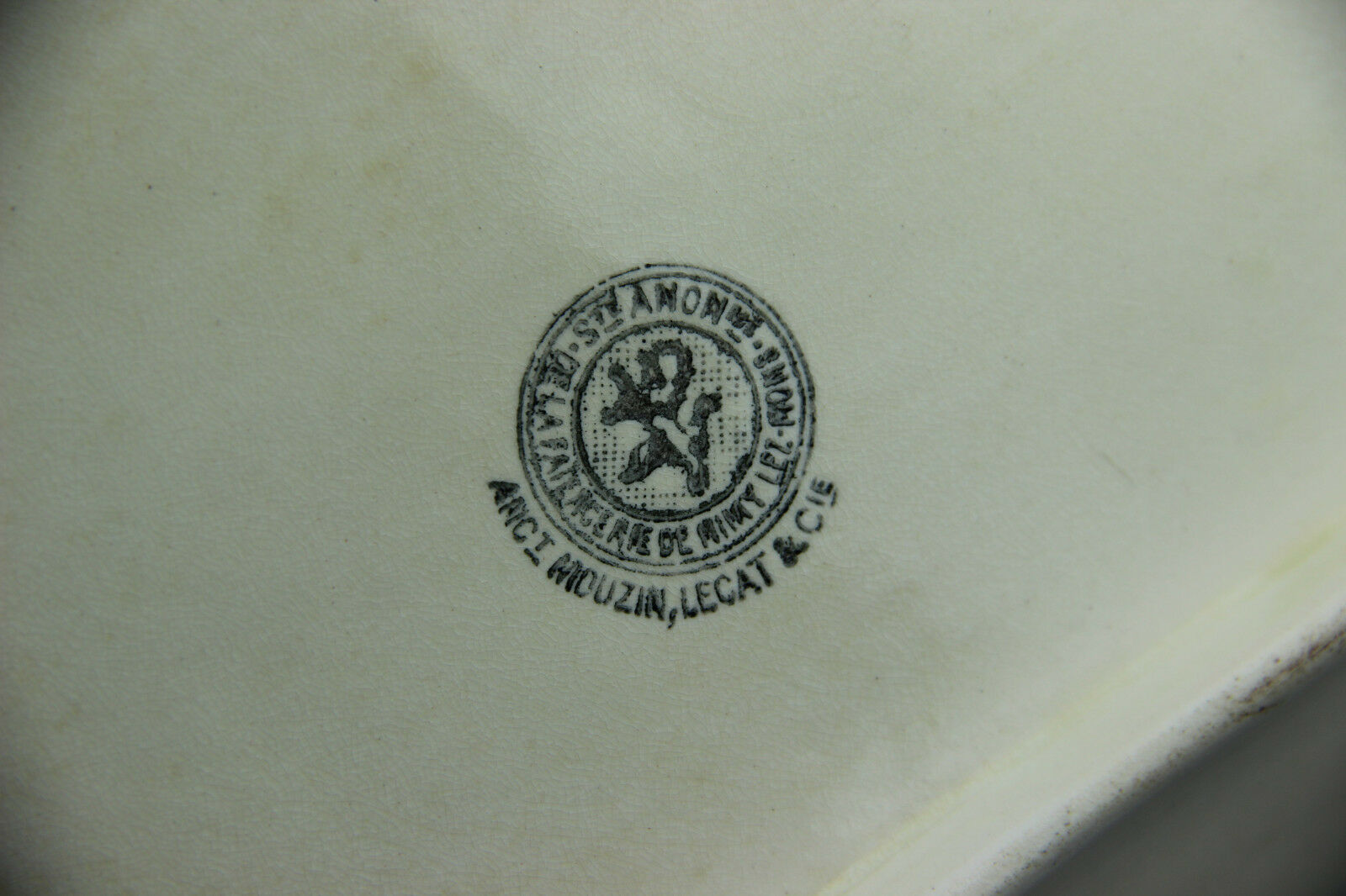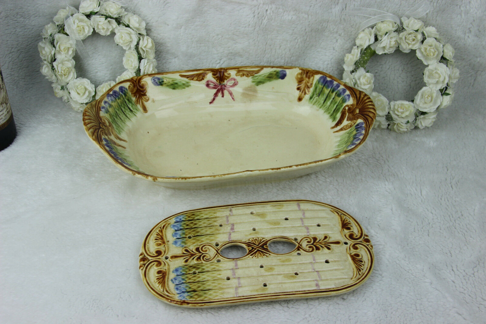 Antique French Mouzin Nimy majolica barbotine asparagus serving tray marked