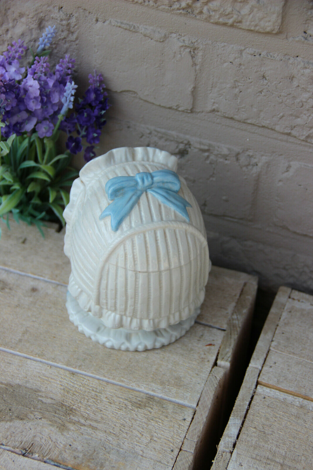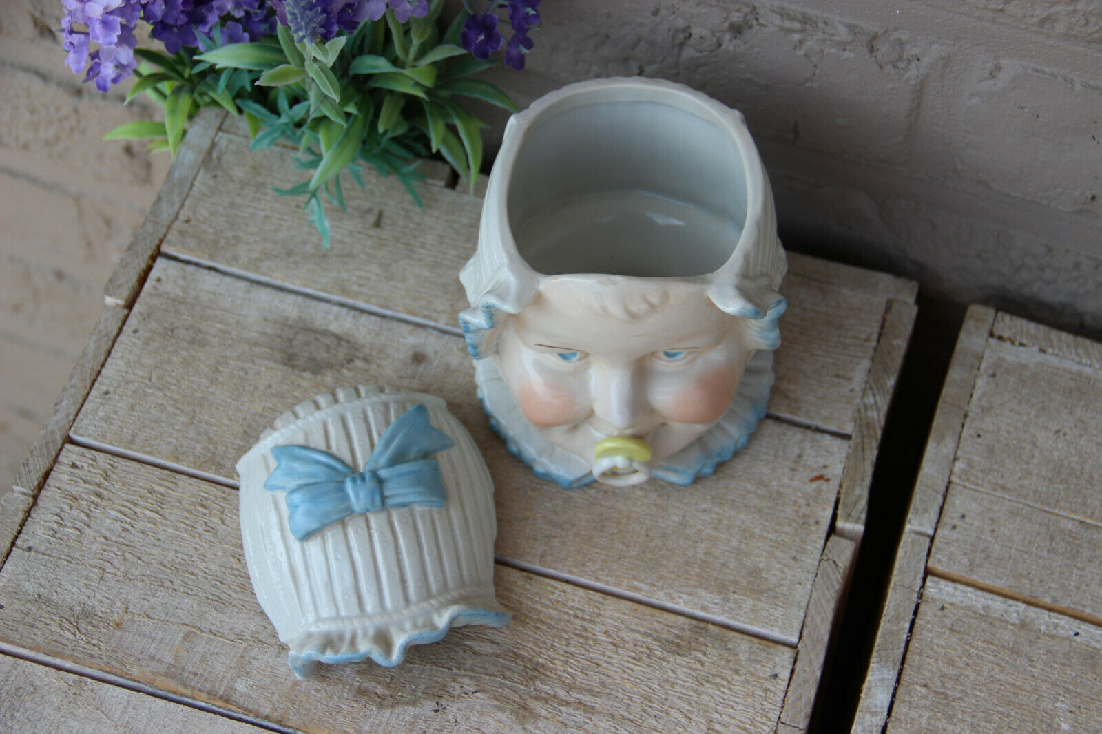 Antique german bisque porcelain baby face child lidded box rare marked