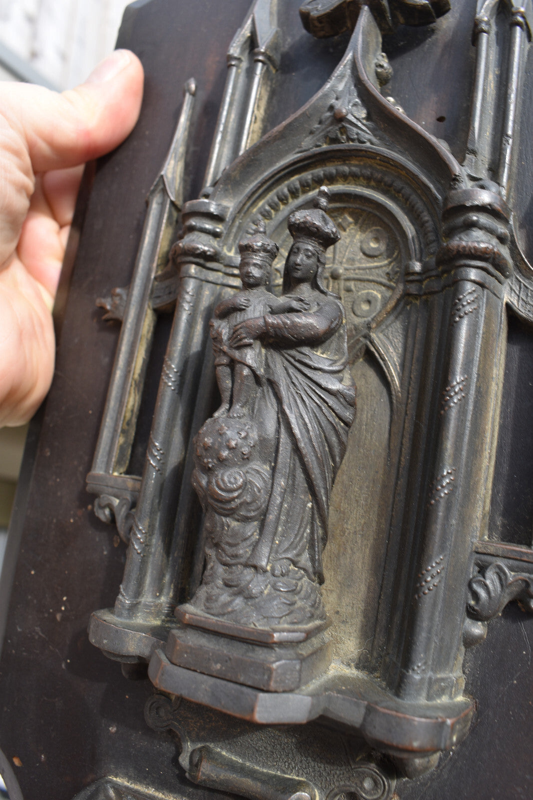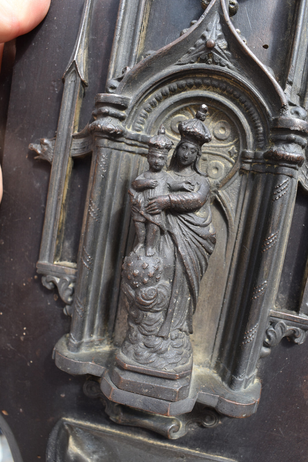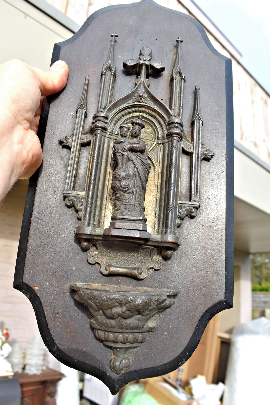 Antique large napoleon III spelter neo gothic madonna  niche holy water font