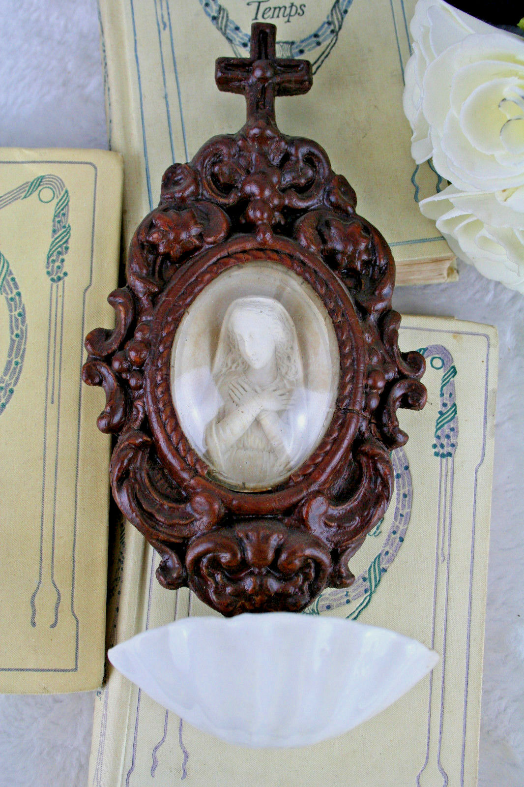 Antique napoleon III  wood pipe clay Meerschaum madonna holy water font 1880