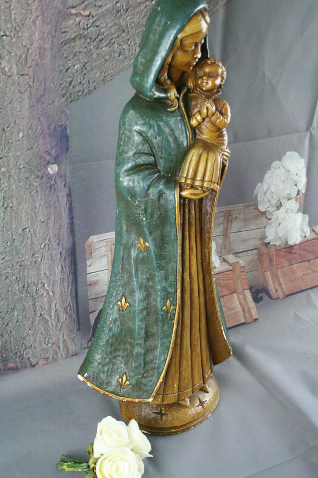 Antique XL 52cm Holy MAdonna signed MERLINI art deco fleur de lys cape