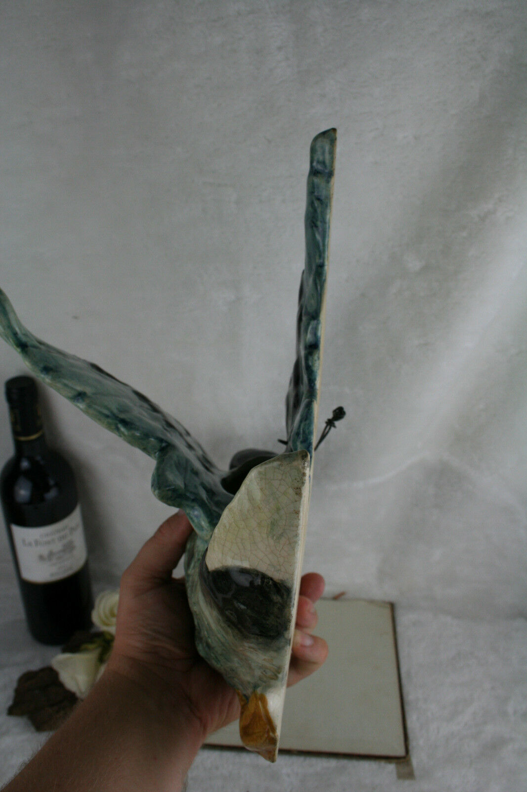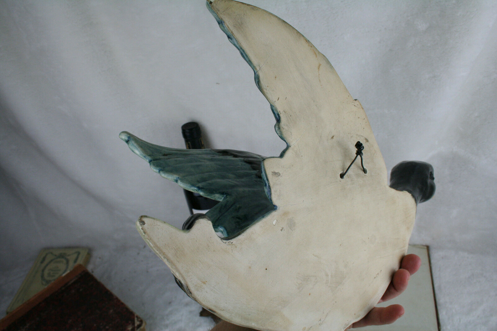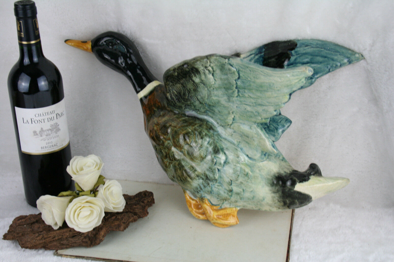 Antique XL French BARBOTINE faience Planter jardiniere wall duck form
