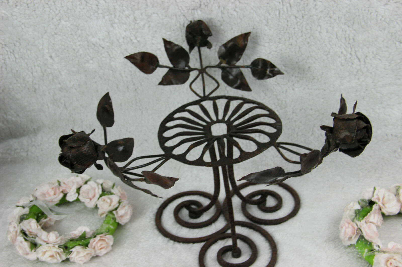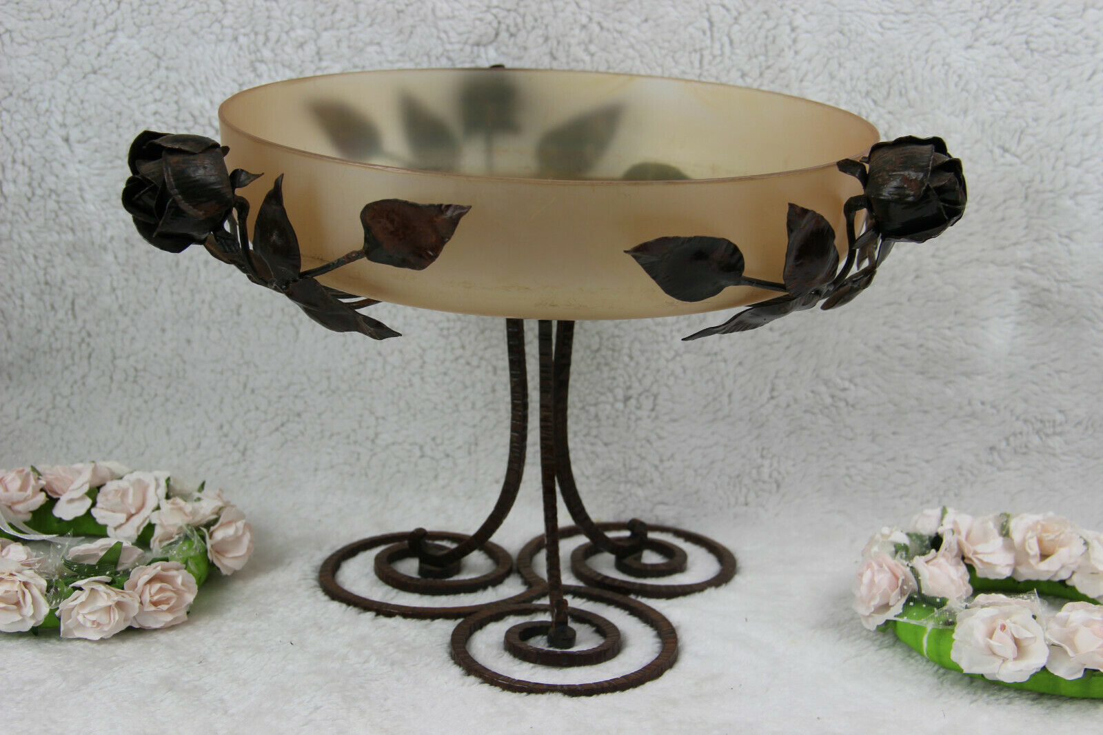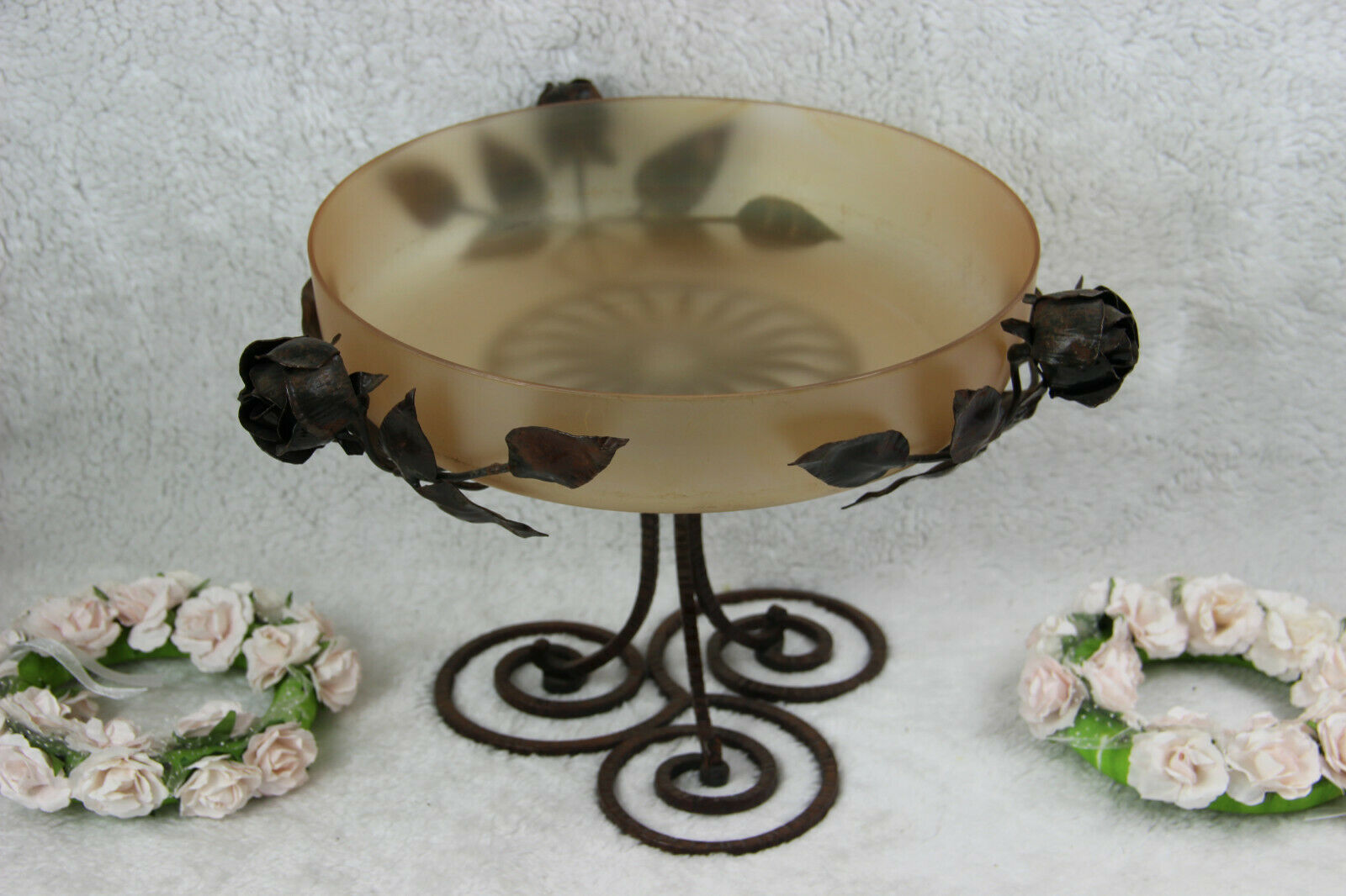 ART Nouveau French antique cast iron rose flowers Rose Glass bowl centerpiece