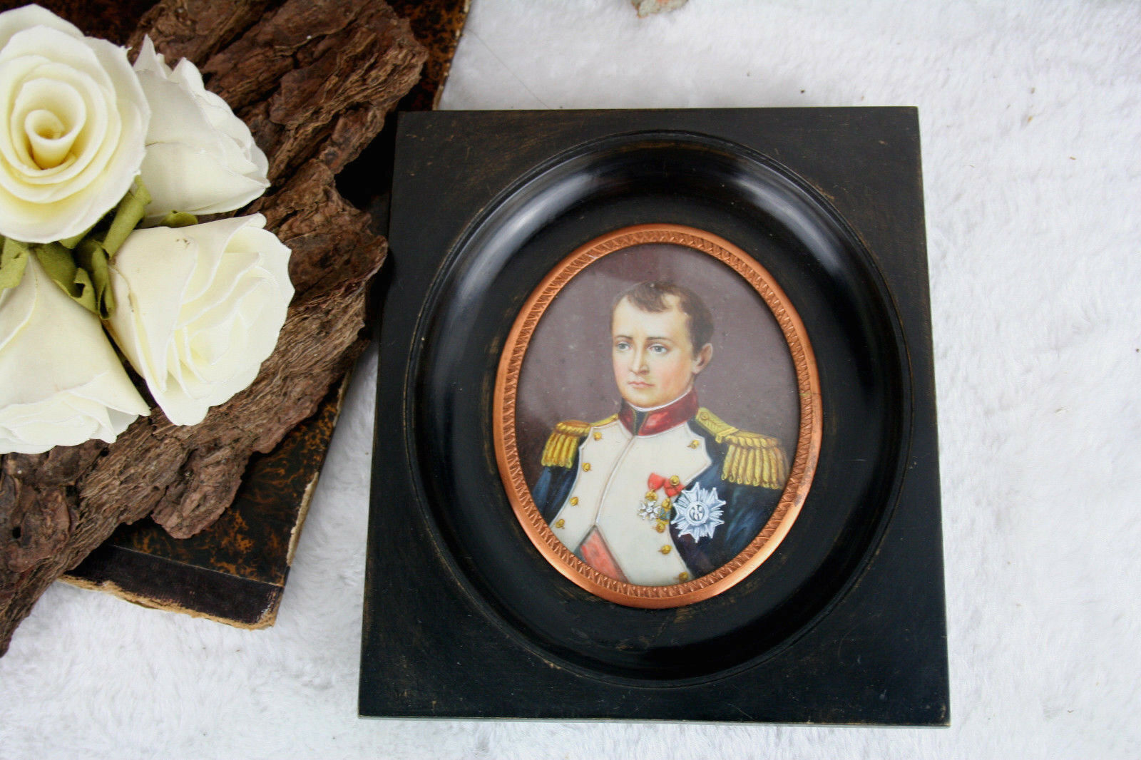 French antique Napoleon Officer Military portrait framed 1950