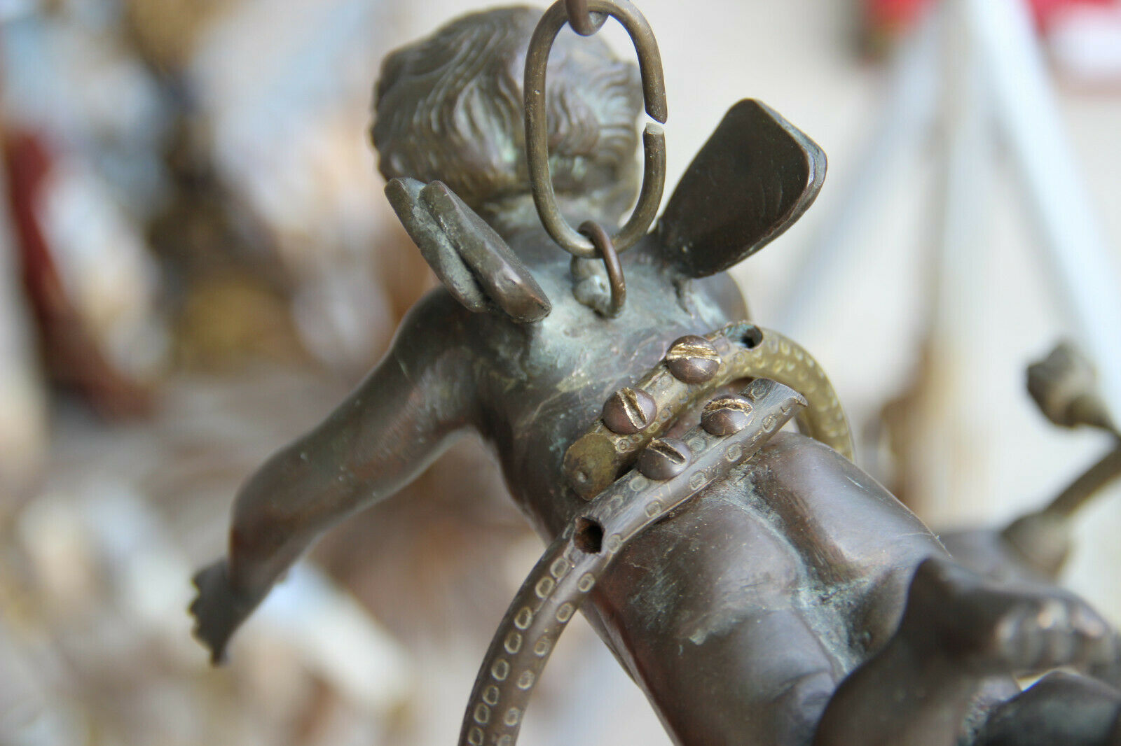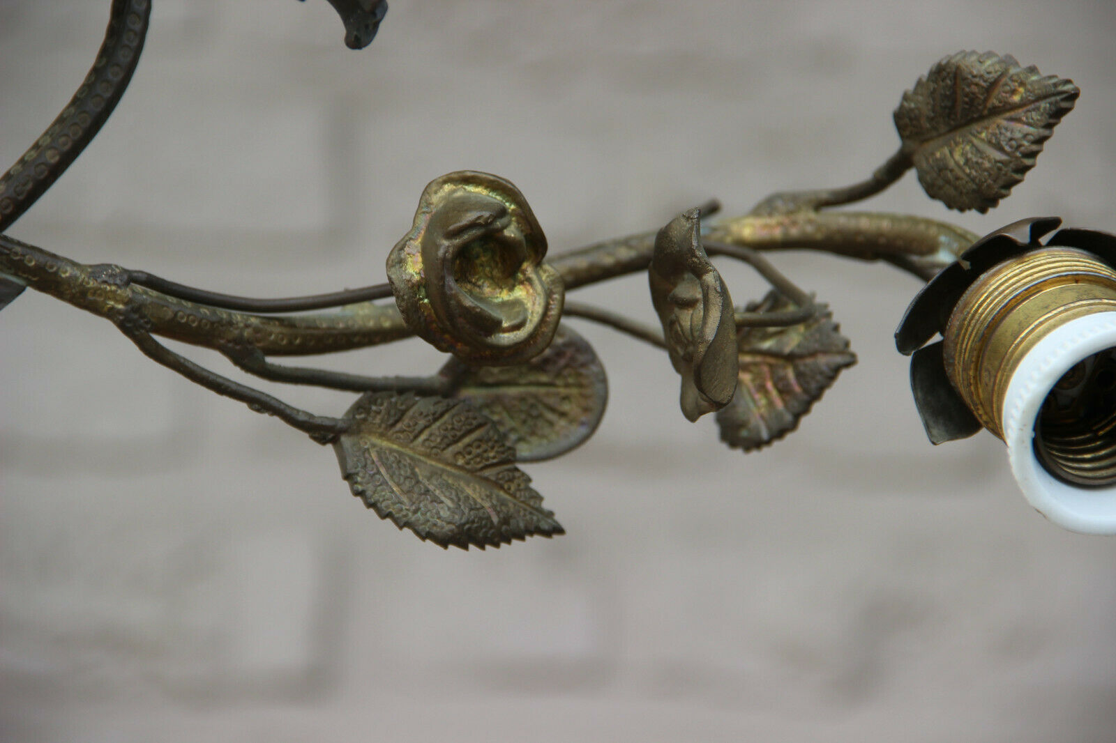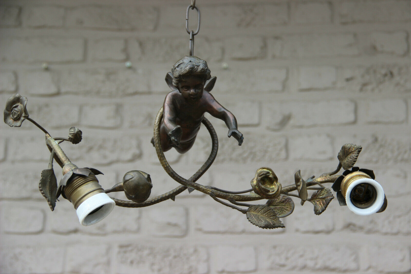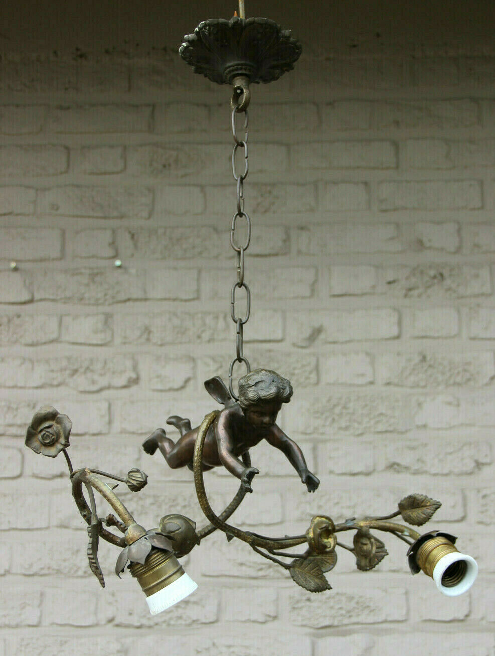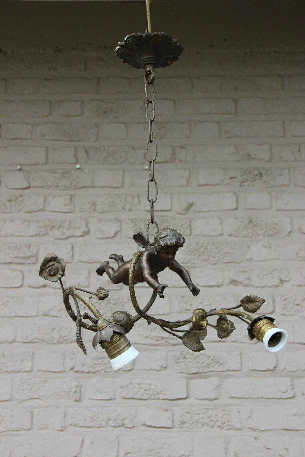 Gorgeous antique bronze french 2 arm putti angel chandelier pendant lamp
