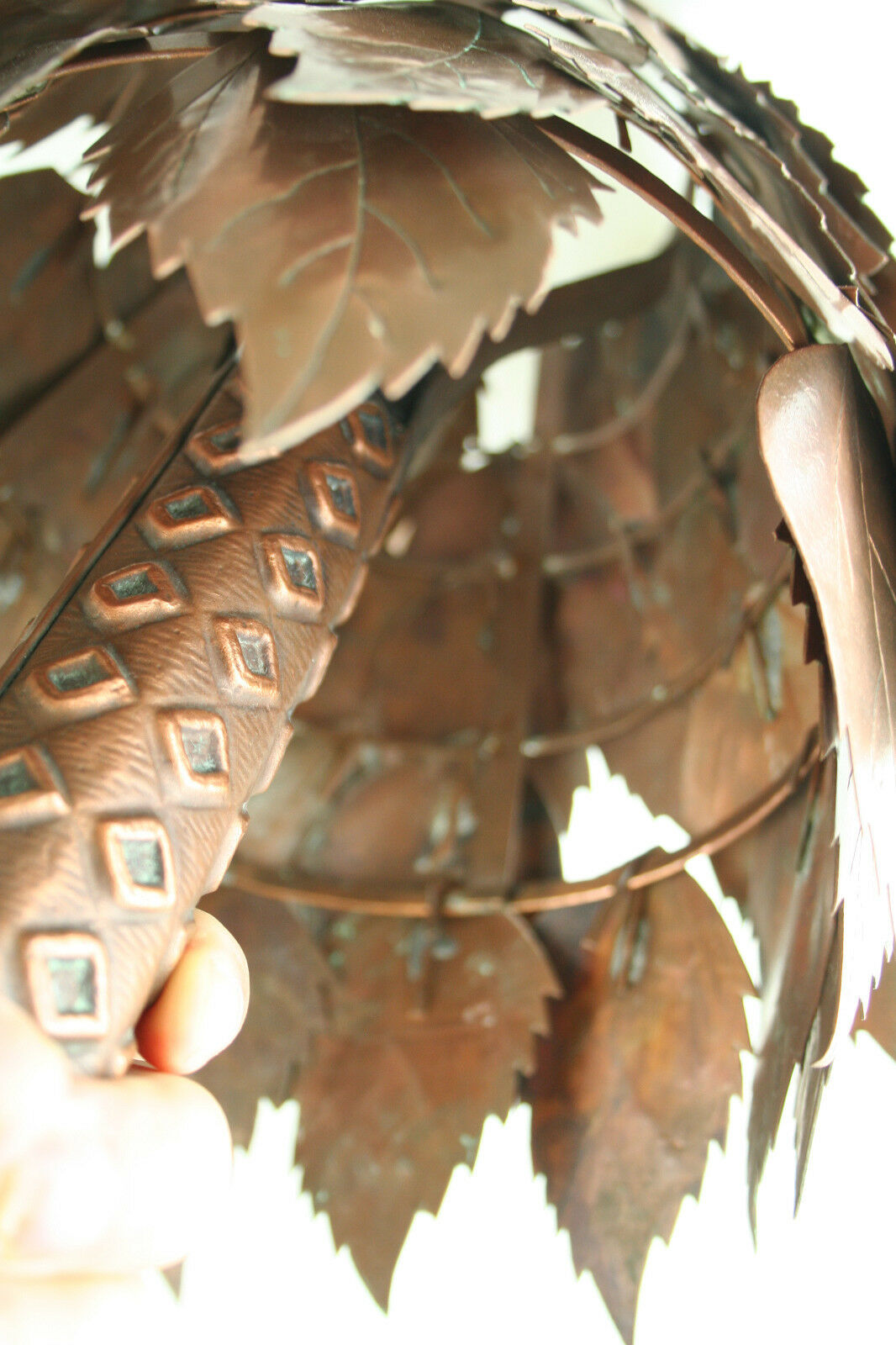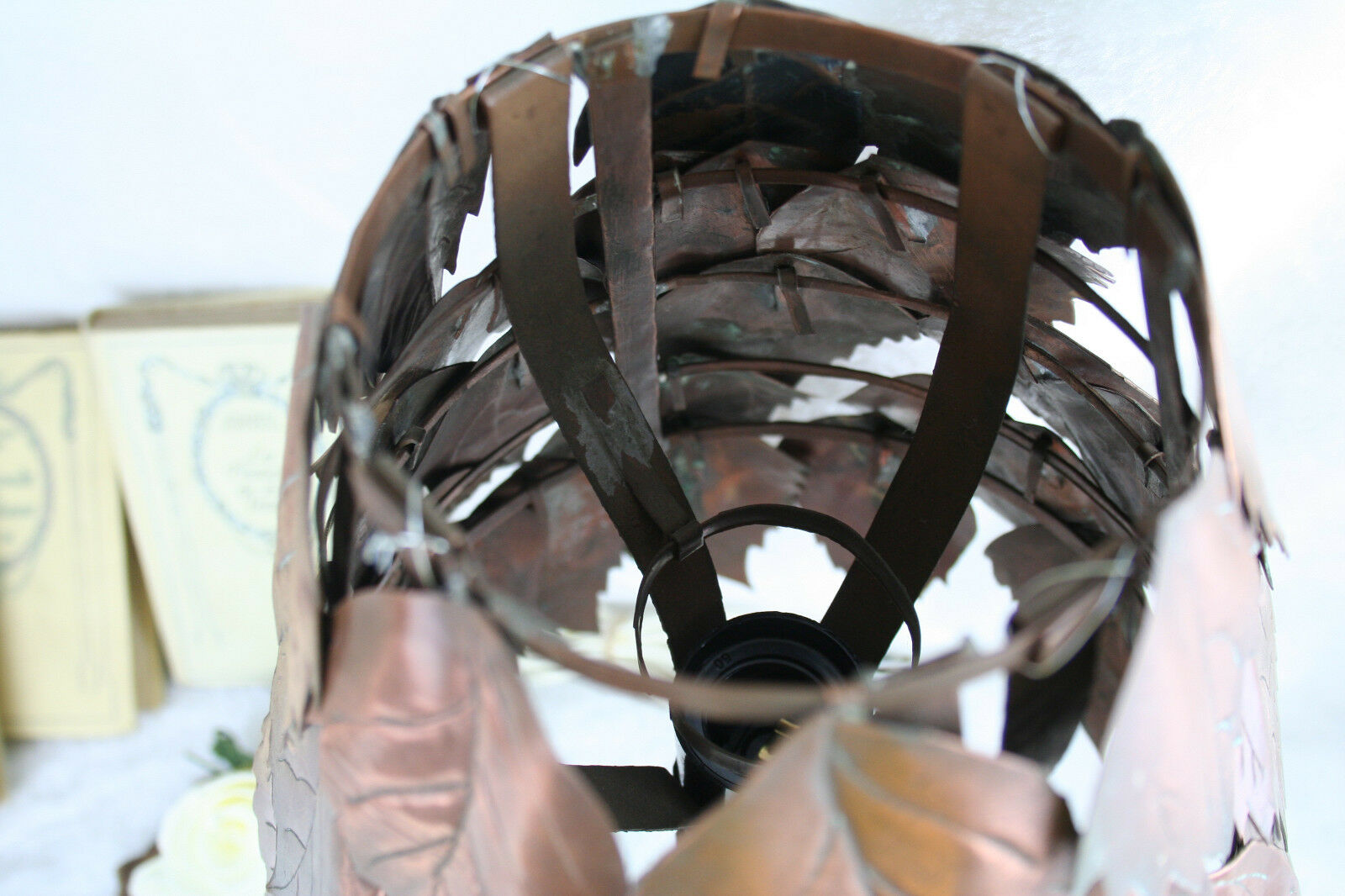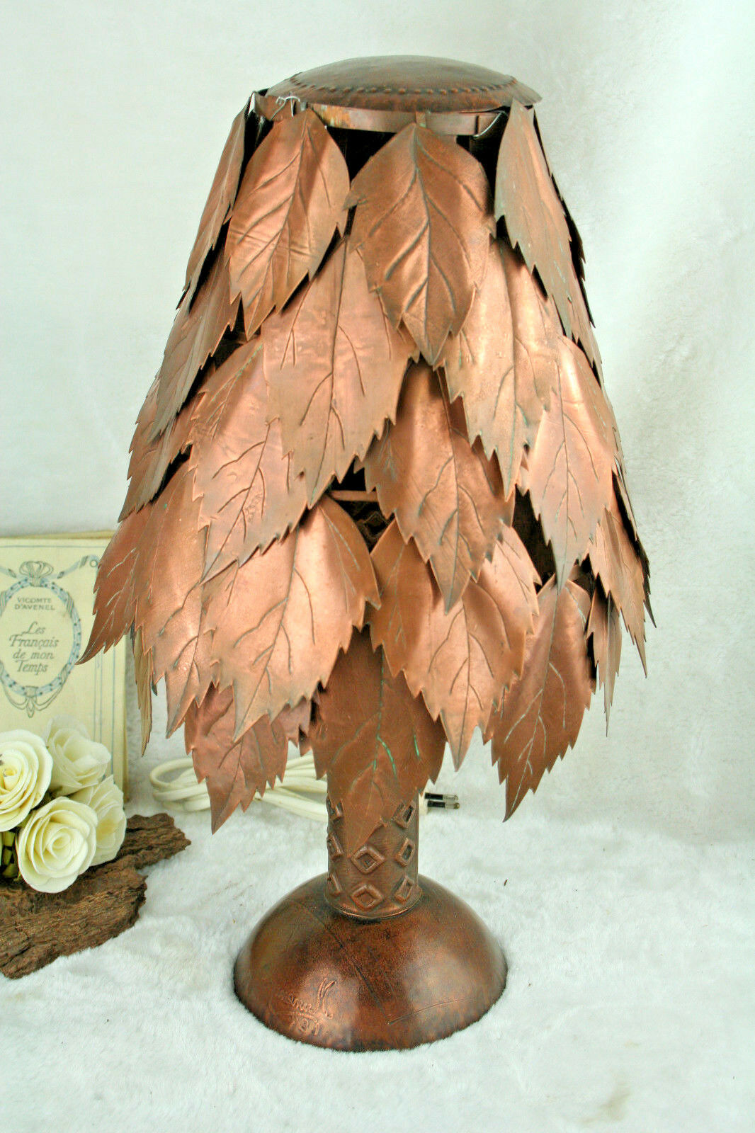 Handmade signed Copper leaves desk table lamp attr maison jansen paris