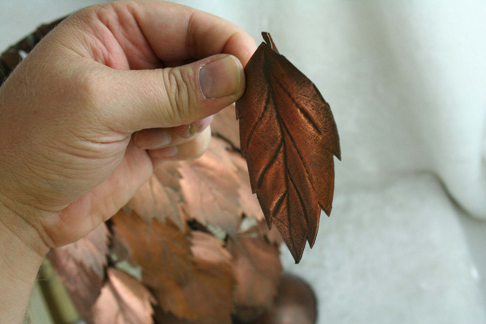 Handmade  signed  Copper  leaves desk table lamp attr maison jansen paris