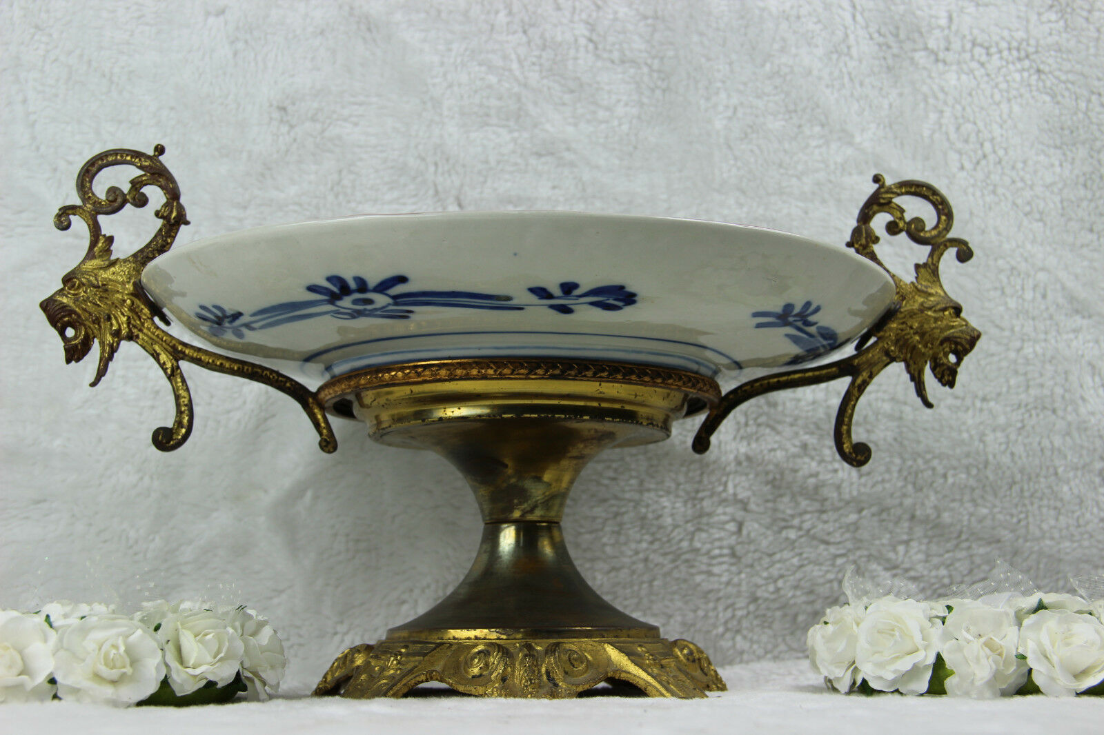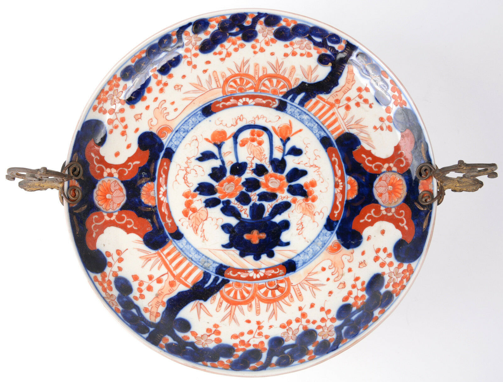 Large Antique Imari porcelain plate Centerpiece coupe bowl lion heads