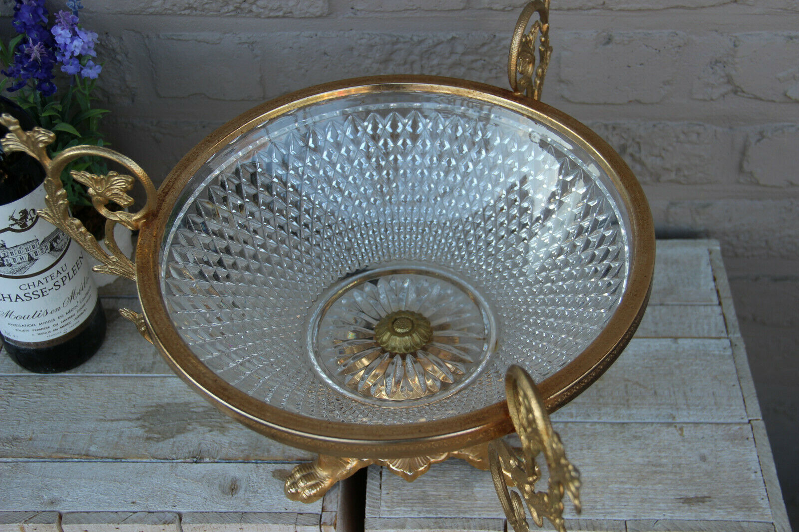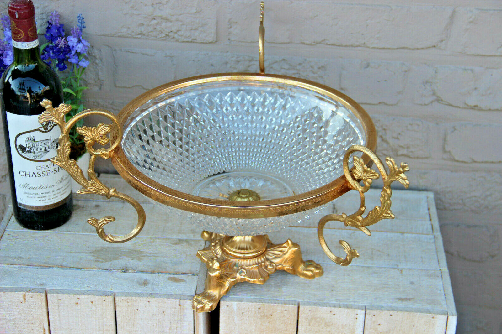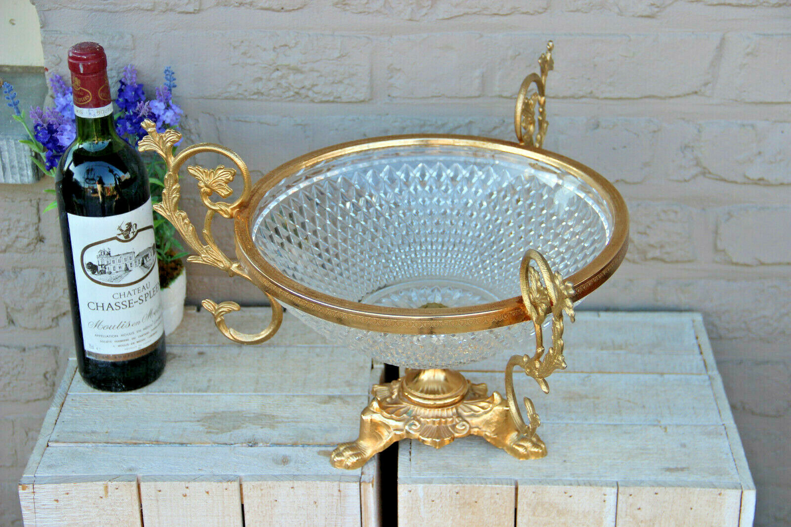LARGE empire design  french Crystal glass Centerpiece fruit bowl lion paws
