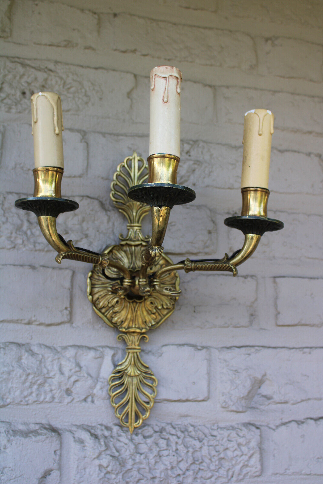 PAIR French brass 3 arm Wall lights sconces swan empire design
