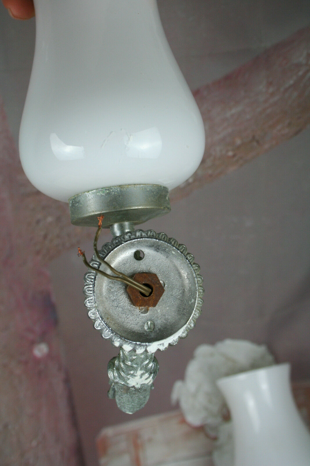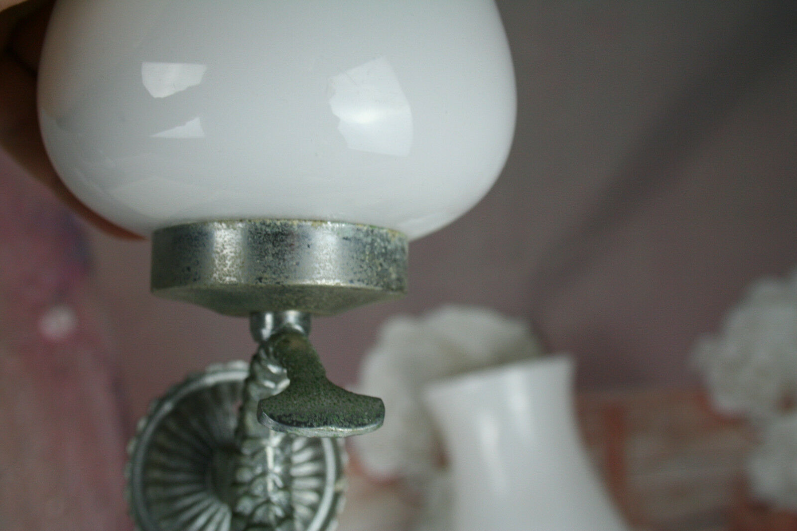 PAIR French empire fish dolphin wall lights sconces silver patina