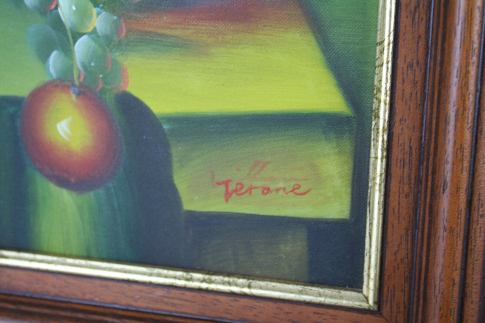 PAIR vintage 80's Flemish Oil canvas still live fruit painting signed