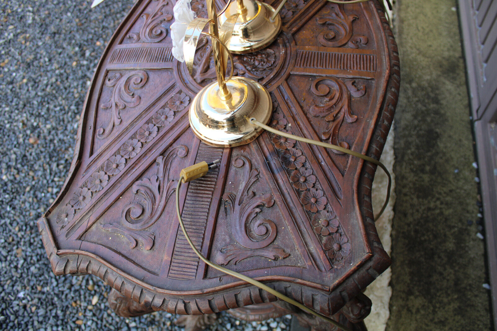 PAIR vintage Murano glass flower table lamps metal gold gilt 1970s