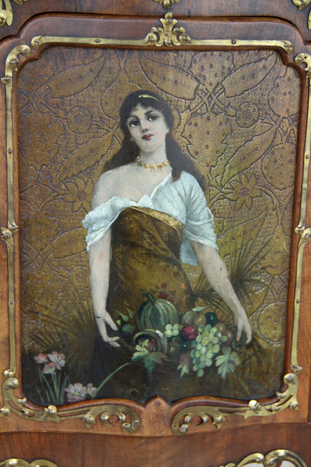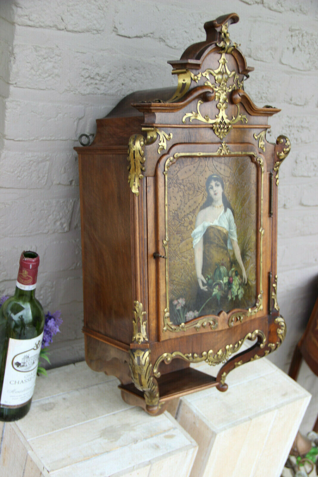 RARE Antique French wood apothecary wall cabinet hand paint portrait lady